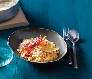 Met verschillende ingrediënten pas je risotto makkelijk aan het seizoen aan. En omdat bier in de keuken niet moet onderdoen, gaan we voor deze heerlijke bierrisotto. Smeuïge risotto met knapperige pancetta als topping… Het water loopt ons al in de mond.