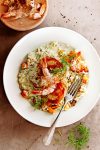 Psst… deze risotto met zoete aardappel, pancetta, garnalen en dilleroom is zo lekker, die houd je het liefst voor jezelf. Romig, zout en zoet, deze risotto maakt je dag weer goed. Serveer het met een frisse salade. Zoals deze knolselderijsalade met spinazie & honingdressing.
