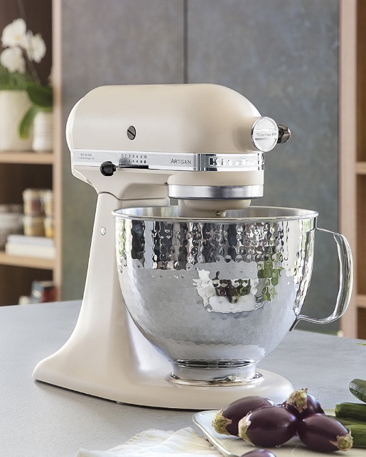 Op de verlanglijst van onze culinair-coördinator Liselore Bus: een gehamerde kom voor haar KitchenAid. Dat geeft je keuken direct een stijlvol, robuust accent. En gewoon ontzettend handig natuurlijk om veel broden tegelijkertijd te kneden, of koekjesdeeg of taarten zowel hartig als zoet. Vanaf €83,30 via KitchenAid.
