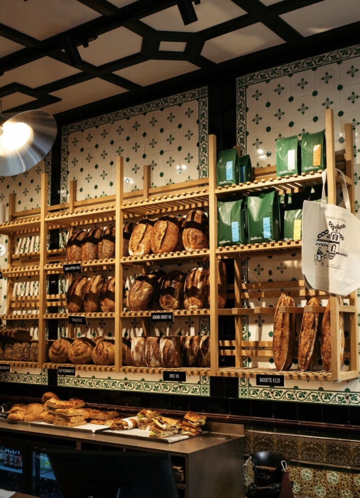 Meneer Leffers ken je misschien al in Delft, sinds kort is er ook een bloedmooie nieuwe winkel en bakkerij in Den Haag, in een pandje uit 1823. Ze bakken geweldig hoge hydratatie desembrood in allerlei soorten. Hoe ze erbij liggen? Hoog opgetast tegen de antieke tegels, ronduit prachtig! Niet te missen: het krokante luchtige desemstokbrood gevuld met geraspte oude boerenkaas en zwarte peper en ook de kardemombuns. meneerleffers.nl
