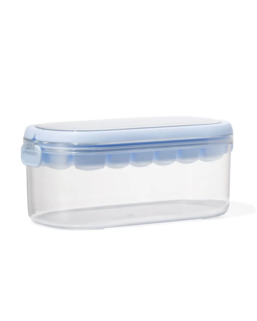 Maak en bewaar ijsklontjes in één keer. Vul ze met eetbare bloemen, aardbeien of kruiden voor verrassende, kleurrijke blokjes. Perfect voor restjes én een feestje in je limonade of spritz. Dankzij het bewaarbakje heb je altijd een voorraadje klaarstaan.