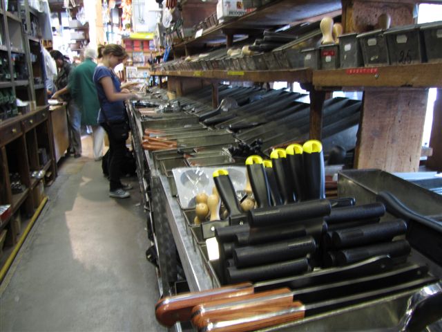 ‘Eigenlijk is dit meer een soort magazijn voor profkoks, maar gewoon toegankelijk voor iedereen. Voor koks omdat ze zoveel waanzinnig grote pannen op voorraad hebben, veel gietijzeren (koeken)pannen, koperen vormen en sauspannen, chocolade- en madeleinevormpjes, pol- en soeplepels, messen, deegrollers en veel fijne keukenhulpjes. Er lijkt hier 200 jaar niets veranderd en dat is juist de charme! Alle kookwaar staat in oude houten stellingen gestapeld en twee krakende houten trappen leiden je naar de kelder waar nóg meer pannen, vergieten, vleesmolens etc. staan te wachten op nieuwe eigenaars. Twee ’tijdloze’ verkopers, ze zouden broers kunnen zijn, knikken iedereen die met kookplannen rondloopt, bemoedigend toe. Echt een adres voor kookgrage types en liefhebbers van bijzondere authentieke winkels.’