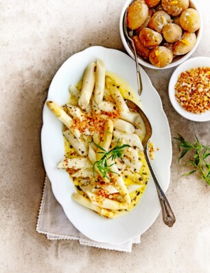 geroosterde kabeljauwfilet met olijvenkorst & snelle antiboise