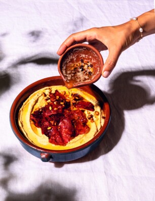 hummus met Turkse pastrami uit Karsu’s Kitchen