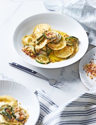 kaas-ravioli met met gekonfijte courgette & pecorino-pangrattato