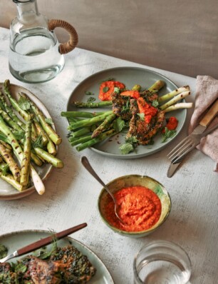 gebraden kalkoen met ancho-chilisaus, citroenige boontjes & zoetzure wortels