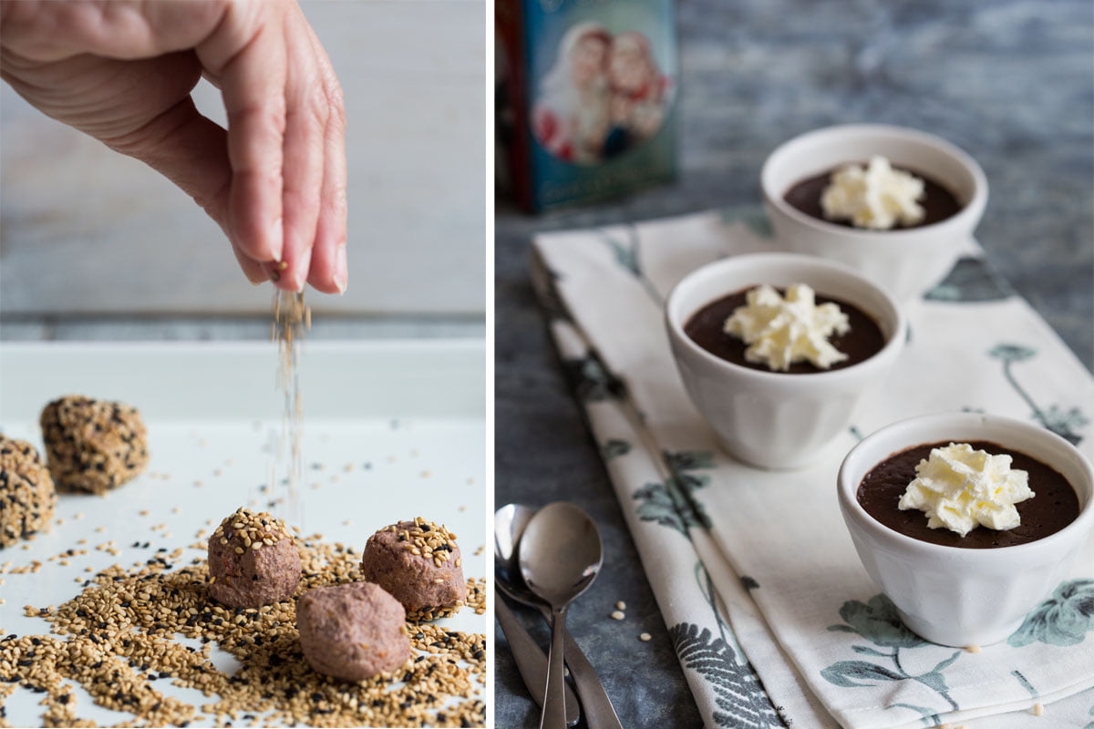 Bonen (peulvruchten) zijn heerlijk om in desserts te gebruiken. Bijvoorbeeld in combinatie met chocolade of cacao, sinaasappel en gember. Zo creëer je ‘warmte’. Vooral bij de donkere soorten past cacao heel goed, kidney-, zwarte- en bruine bonen bijvoorbeeld. Ook munt is een frisse tegenhanger en een scheutje drank is (altijd) erg fijn. Je moet denken aan iets warm, kruidigs of fris en zuur, in combinatie met peulvruchten in desserts. Bonen kunnen in sommige gevallen de room vervangen en in andere gevallen het meel. Dat is fijn want wie gluten-intolerant is, heeft baat bij het vervangen van meel door peulvruchten. Ook bevatten peulvruchten vaak meer vezels en traagwerkende koolhydraten. Prettig, omdat dit geen bloedsuikerschommelingen veroorzaakt en lang verzadigt. De smaak, en dat is voor veel mensen, verrassend subtiel of niet waarneembaar. Je gebruikt dus vooral de voedzame voedingsstoffen van peulvruchten zoals vezels, vitaminen en traagwerkende koolhydraten en je krijgt een bindend en romig effect.