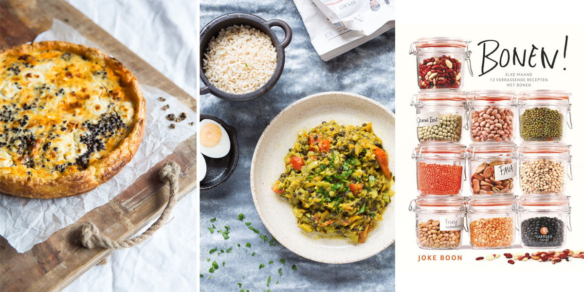 Nog voordat het Jaar van de Peulvrucht aanbrak was Joke Boon al druk in de weer met kidneybonen, linzen, kikkererwten en consorten. Vorig jaar kookte ze elke dag met bonen en de beste gerechten heeft ze gebundeld in haar boek Bonen! Joke: ‘Bonen zijn heel duurzaam. Voor een kilo vlees is bijvoorbeeld 15.400 liter water nodig, voor 1 kilo peulvruchten slechts 400.’