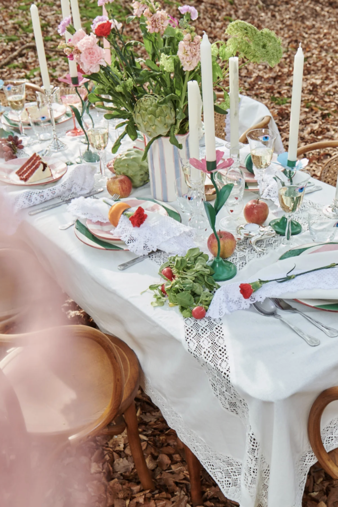 Voeg vervolgens wat fris voorjaarsgroen toe: een vaas met tulpen, narcissen of wilde bloesemtakken brengt direct leven in de brouwerij. Gebruik je mooiste servies en linnen servetten om het geheel af te maken. Een leuk boter lammetje en een mooie kan water met munt en citroen