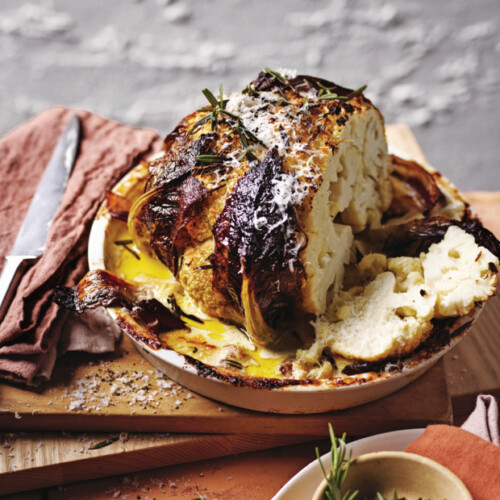 naar receptNiet een bloemkool om vlees te vervangen, maar om deze heerlijke groente te vieren. Vervang de bacon door vegan bacon en je gerecht is volledig zonder vlees.