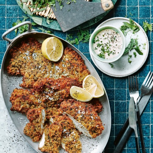 Zelf schnitzels maken is heel makkelijk en ze zijn zoveel lekkerder dan de kant-en-klare versies! Door de kip eerst in karnemelk te marineren vang je twee vliegen in één klap: ten eerste wordt het vlees zachter door het vet en zuur in de zuivelmarinade, en ten tweede voorkomt de karnemelk dat de kip uitdroogt.