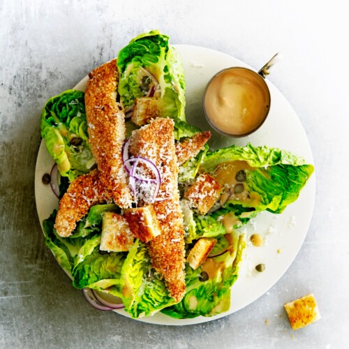 naar receptDe sojasaus in de dressing vervangt ansjovis en geeft de salade een oosterse kick. Echt fantastisch lekker!