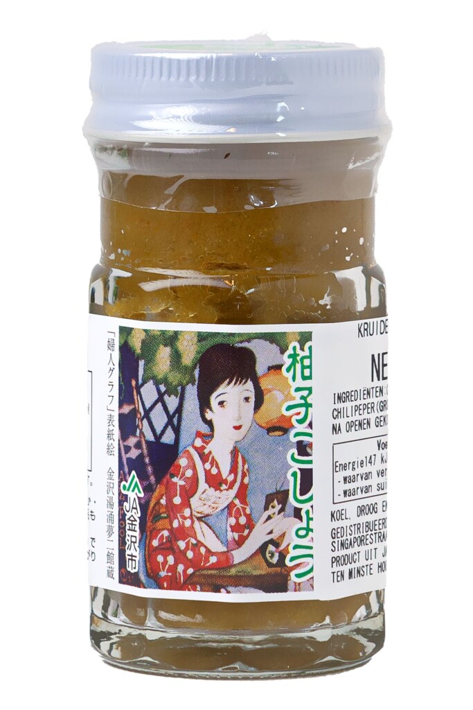 Yuzu kosho is een Japanse pasta gemaakt van verse chili’s (meestal groene of rode Thaise bird’s eye chiles – kortom: loei en loeiheet!), gefermenteerd met zout en de schil en het sap van yuzu, een zure en aromatische citrusvrucht uit Oost-Azië.