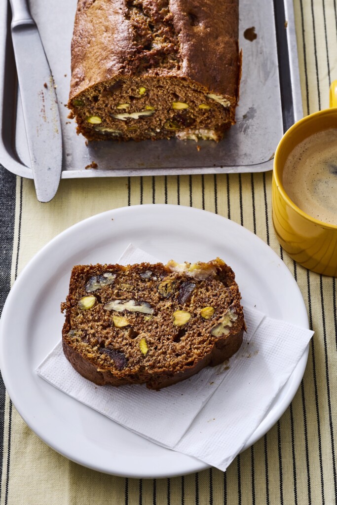 6. Snijd het bananenbrood aan en serveer zoals je wilt. Suggestie: serveer het warm als toetje met een bol pecan- of hazelnootijs en strooi er wat gehakte noten overheen.