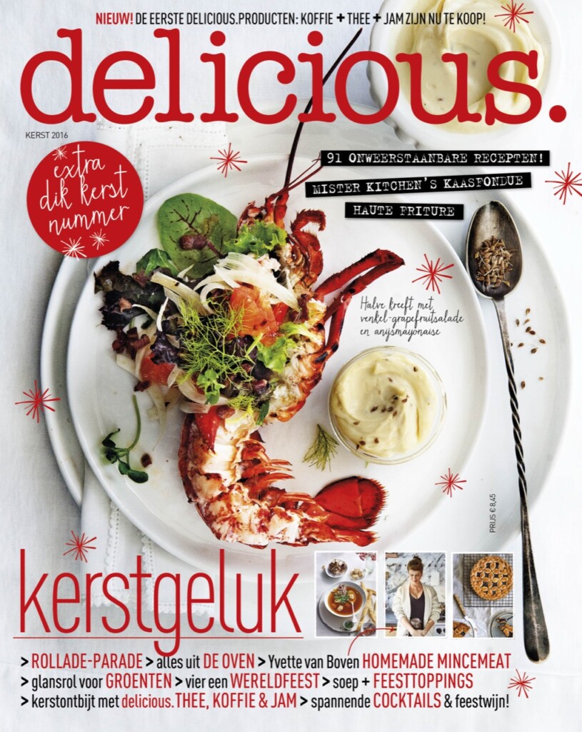 ‘Opeens is het zover en bestaan we 10 jaar’, schrijft Makkie Mulder in ons november-nummer. Er kwam in 2016 een extra dik kookboek uit met al onze favoriete recepten (212 stuks!) van de jaren daarvoor. Om je een idee te geven serveerden we cantharellensoep, lamscarpaccio, kreeft met anijsmayo, en toe brillat-savarin. De titel? Het beste uit delicious. Nog groter nieuws was het feit dat we een eigen lijn begonnen met jam, koffie en thee.