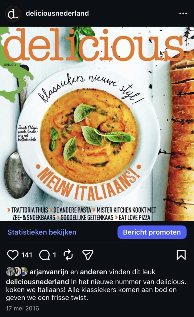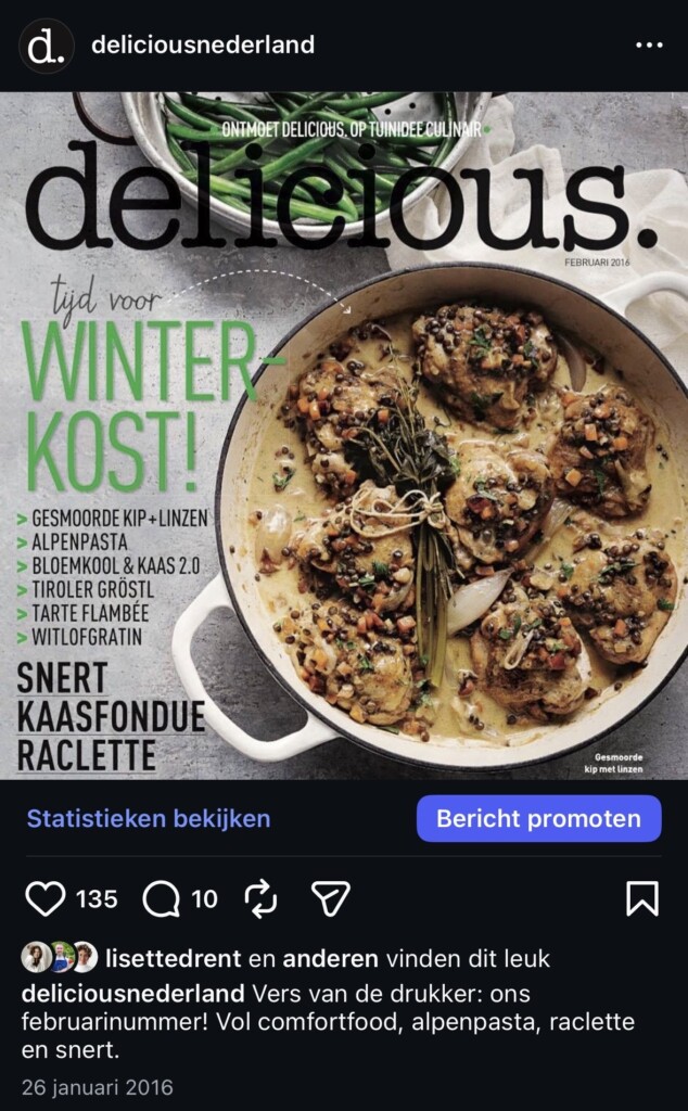 De foto’s zijn nog wat minder scherp en we waren dol op tekst in beeld. Bas Robben werkte toen nog als culi-redacteur en schreef zijn eerste boek (inmiddels heeft hij net zijn zevende boek, Slowcookerbijbel, uitgebracht). Janneke en Serge Philippi waren er natuurlijk al bij, net als Yvette van Boven, die ons leerde bakken met courgette en uitleg gaf over tortilla’s – die je hier kunt teruglezen.