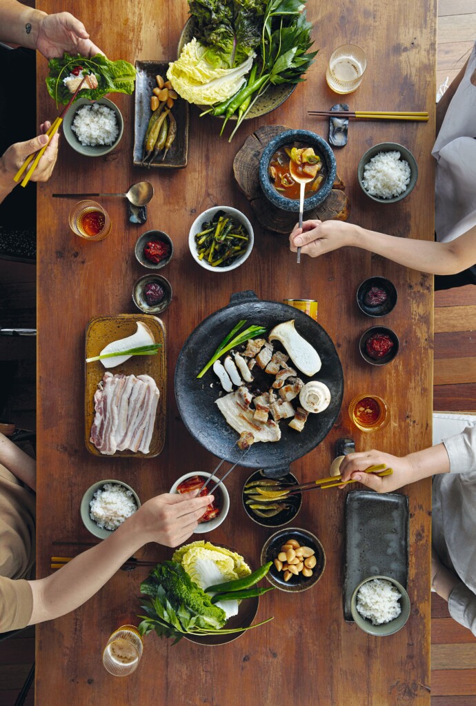 Het laat zien hoe ze – samen met het volgen van de seizoenen – de basis vormen van de Koreaanse keuken. In ons Korea-nummer delen we zoete Koreaanse pannenkoeken uit het boek, evenals doenjang varkensbuik deopbap en kimchi jjigae.