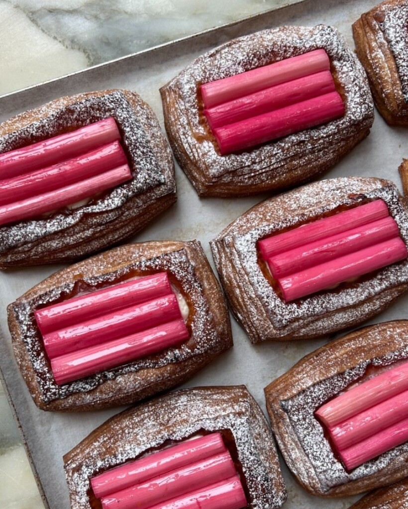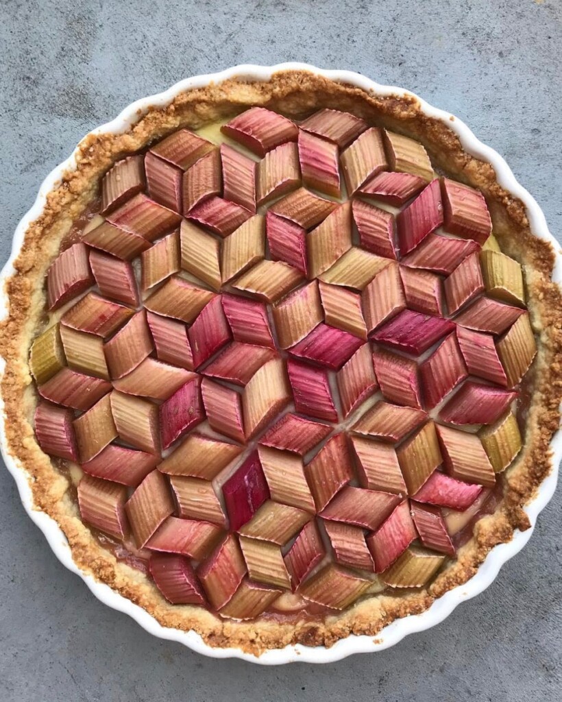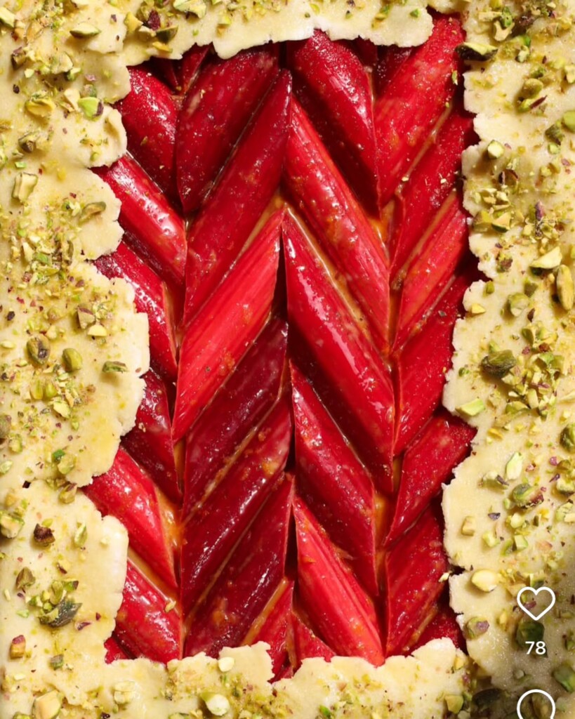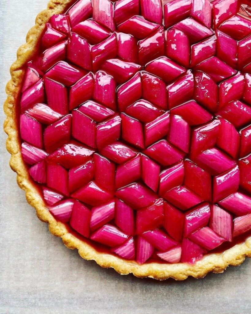 We hebben de mooiste motieven, patronen of hoe je deze rabarberkunstwerkjes ook wil noemen — voor je opgezocht en onder elkaar gezet in willekeurige volgorde (hoewel de creaties van Ruby Bhogal stuk voor stuk winnaars zijn).