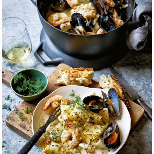 naar receptEen klassieke ragù is een rijke, langzaam gegaarde saus die comfort en diepgang brengt in elk gerecht. Maar wist je dat ragù ook perfect samengaat met vis en schaaldieren? Deze versie met malse vis en sappige mosselen geeft een lichte, verfijnde twist aan het traditionele recept.