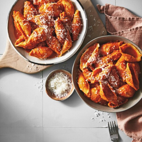 Dat gulle scheutje wodka doet echt niet alleen wonderen voor je humeur. Kijken we op moleculair niveau dan heeft wodka wel degelijk een functie; het plakt de vetoplosbare smaakstoffen uit de tomaten, 'nduja, slagroom en knoflook aan elkaar zodat de pasta nóg romiger wordt. Goed excuus om een flesje in huis te halen…