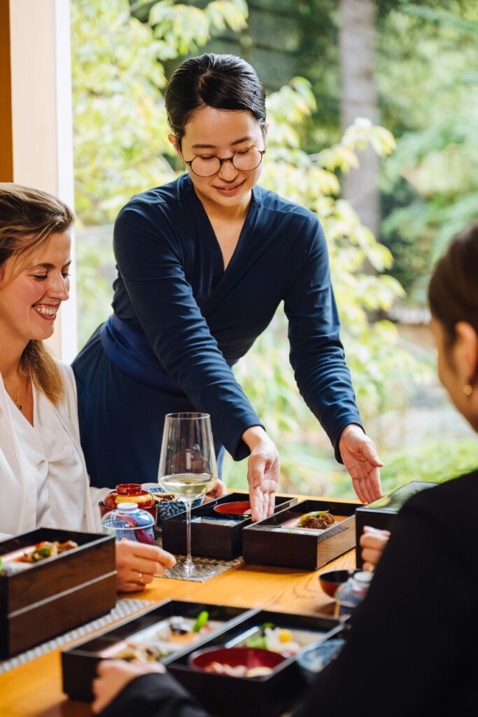 De bento-box kost 58 euro per persoon en verandert regelmatig, zo ontdek je iedere keer iets nieuws. Op het menu staan bijvoorbeeld Een delicate sashimi selectie met zeewiersalade en sesamsaus, dungesneden eendenborst met gel van rijstazijn, zalm dengaku miso met atsuyaki tamago of fijngesneden Wagyu sukini met witlof. Aangevuld met bijgerechten als Japanse rijst met paddenstoelen, misosoep en chawanmushi met sneeuwkrab en afgesloten met verfrissend matcha ijs.