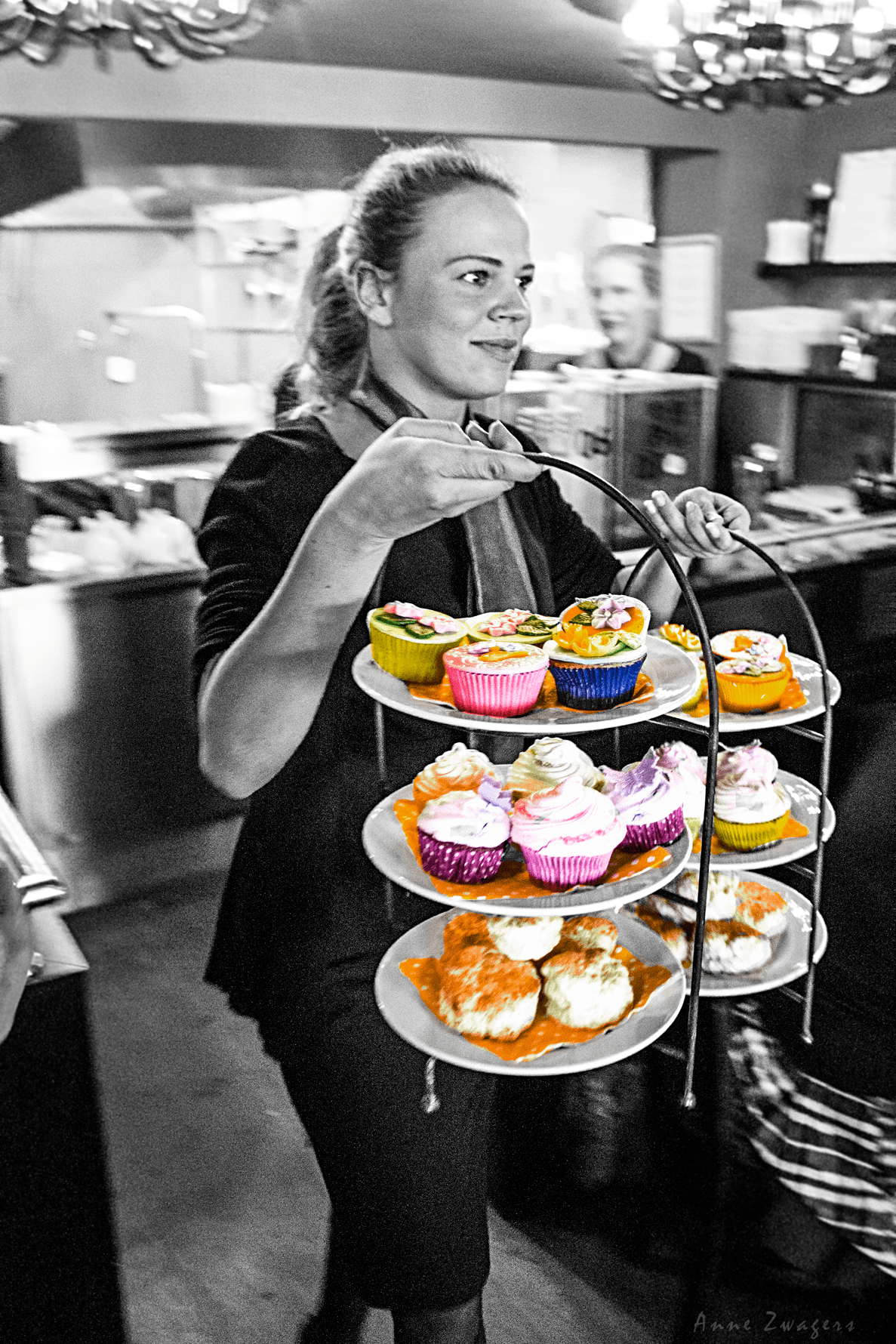 De middag stond in het teken van de stichting Adoption Children Netherlands Sri Lanka. De witte en zwarte brigade, bestaande uit leerlingen van de Hotelschool, zorgden voor elegante sandwiches, cupcakes in lentekleuren en kakelverse scones met zelfgemaakte lemoncurd en clotted cream. De thee was high quality, want van Dilmah. Thee uit Sri Lanka dus. Er was muziek, er was prosecco, een bomvol restaurant, een uitgebreide veiling en een prettige sfeer. Dit alles onder het toeziend oog van de trotse eigenaren van restaurant ’t Deurtje Kim van Raak en partner Jeroen Ellermeijer. Het restaurant, waar je van maandag t/m zaterdag kunt genieten van de gastvrijheid, de ongedwongen sfeer, de dagverse en zoveel mogelijk duurzame ingrediënten, bijpassende wijnen en de creativiteit van chef-kok Rob van Schaik en sous-chef Bart Dijkstra.