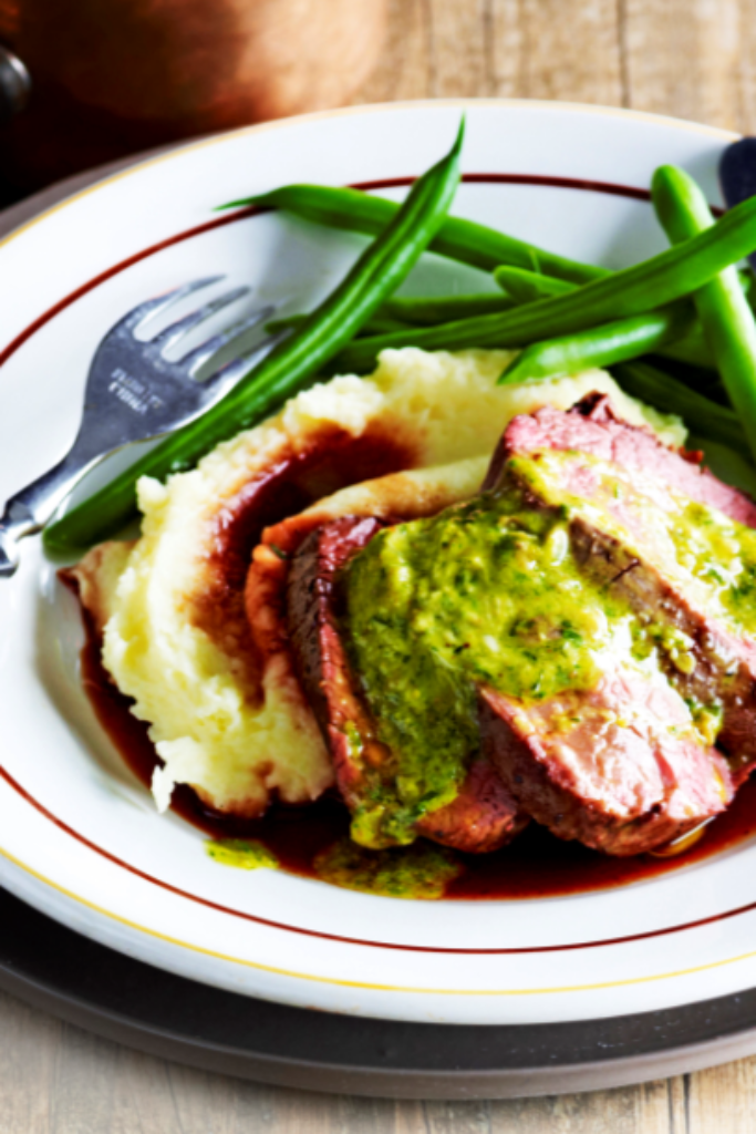 bestrooi hem met zout en peper en bak hem in 2 min. rondom goudbruin. Zet het vlees in de oven en braad het 20 min. voor rosé of tot het vlees gaar is naar wens. Leg het op een bord. Laat het losjes afgedekt met aluminiumfolie