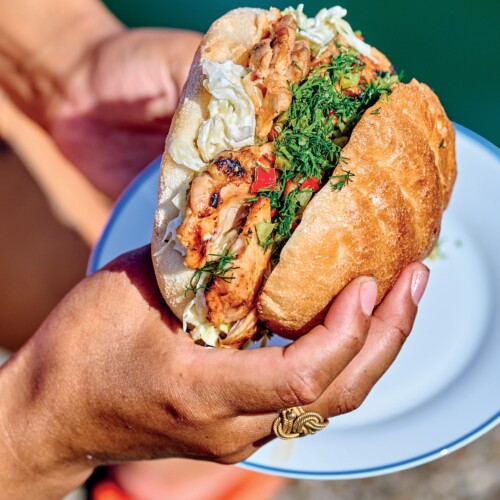 naar receptIs er iets lekkerder dan een broodje kip? Durf geen 'ja' te zeggen voordat je dit vlammende recept van Noni Kooiman proeft. Haar truc voor malser dan malse kip: eerst even wentelen in een marinade van harissa, augurkensap (!), honing en karnemelk.
