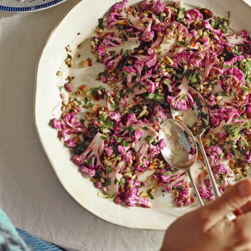naar receptEen makkelijke salade van rauwe bloemkool, zoete dadels, specerijen, geroosterde gerst en ingelegde citroen.