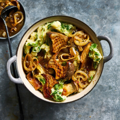 Eigenlijk kun je alle harde knol- en wortelgroente nemen om puree en stamppot op te leuken. Lekkere combi’s met aardappels: pastinaak, pompoen, wortel, knolselderij, aardpeer, of koolraap! Deze winterstamppot maken we met paddenstoelen, snijbiet en pittige Hollandse blauwaderkaas.