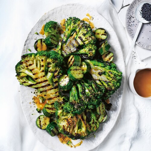naar receptDun gesneden, gegrild en met een powerdressing van sake, mirin & tahin.