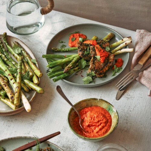 naar receptFrisse kruiden bij het lamsvlees én geroosterde paprika bij de groenten maken dit tot dynamische lentekost.