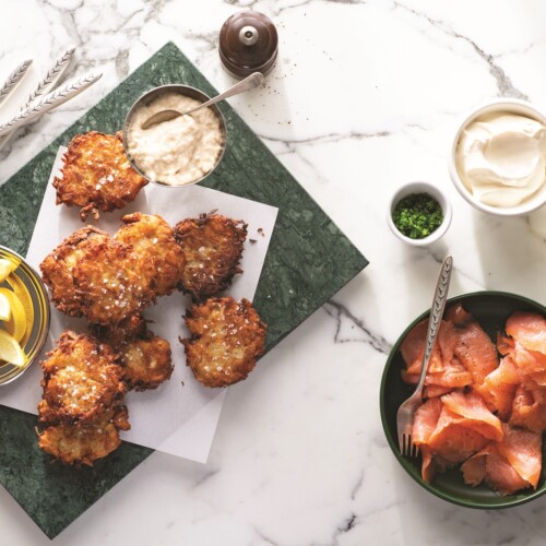 naar receptAls je in New York bent geweest rondom het Joodse feest Chanoeka, is de kans groot dat je latkes hebt geproefd: heerlijke krokante aardappelkoekjes die je zo eet, of belegt met zalm en crème fraîche. Yasmin Newman deelt in deze voorpublicatie van Eat NYC haar lievelingsrecept.