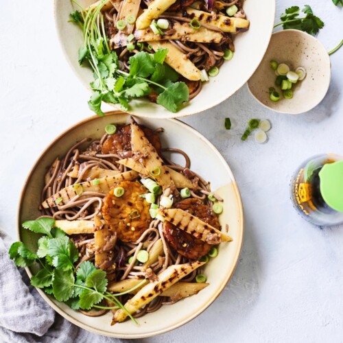 Dat laatste maak je door knolselderij héél dun te snijden en te masseren met olijfolie, miso en allerlei andere superhartige ingrediënten: een slimme manier om knapperige spekjes te verruilen voor een gezondere, plantaardige variant zonder in te leveren op smaak. En dat is nog maar één voorbeeld van al het lekkers wat je tegenkomt in deze lijst met gezonde lente recepten.