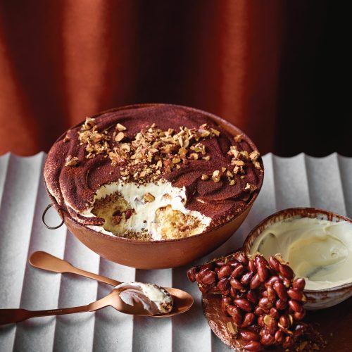 naar receptTiramisu staat voor delen, voor lang blijven zitten en praten over de avond en het leven. Alles wat lekker is, gaat erin. De stukjes chocolade zorgen voor wat bite. Deze tiramisu met specerijen en frangelico heeft het allemaal. De tiramisu kun je 1 dag van tevoren maken.