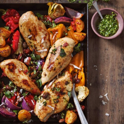 naar receptIn haar rubriek wil Julie je verrassen met toegankelijk eten, met vaak een frisse, crispy kick. Dit recept voor kiptraybake is een mooi voorbeeld. In een handomdraai vier je een kleurrijk Italiaans feestje!