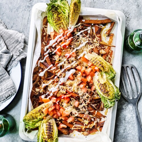 naar receptJanneke laat zich graag inspireren door keukens van over de hele wereld en maakt daar haar eigen, makkelijke versie van. Ze is dol op paddenstoelen en worstjes, visgoulash met rijst, pittige soto én traybakes met groenten! Deze traybake is vegetarisch en glutenvrij. Fijn voor velen dus! Laat de oven het meeste werk voor je doen terwijl jij de tafel (of bank) klaarmaakt om in no time te kunnen eten en ontspannen.