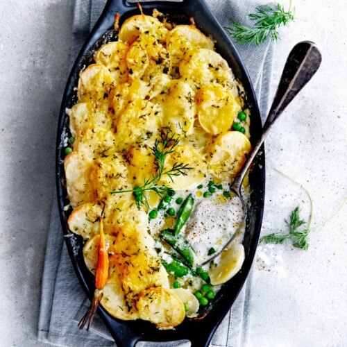Romige vis met witte wijn en een krokant aardappeldakje: dat wil je toch?!