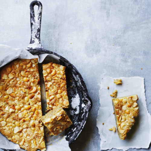 Zin in een lazy sunday? Bak zaterdagavond boterige blondies met crunchy macadamia’s, een hint van koffie en royaal zout. Succes verzekerd!