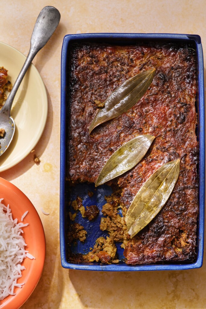 Er zijn allerlei fantastische curry’s in Zuid-Afrika. De klassieke bobotie is daar één van en wordt vaak beschouwd als het nationale gerecht van Zuid-Afrika. Het is een smaakvolle, aromatische curry-gehaktovenschotel die zowel zoet als pittig is.