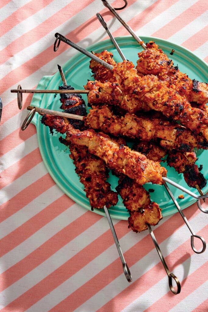 Spiezen horen bij buiten koken net zoals de geur van smeulende kolen op een warme dag in mei. Extra leuk dus dat we juist nu een recept van buikspeksaté uit Noni’s bbq-boek (zonder gedoe) mogen delen!