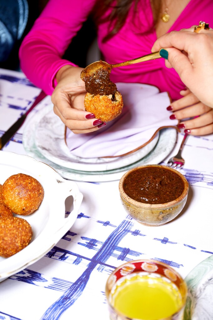 Sara: 'Deze chutney wil je standaard in je koelkast hebben staan, ze is fruitig, kruidig, pikant en geeft je ook nog een aardse, zurige knuffel bij binnenkomst. Een femme fatale om van te houden.' Serveer noomichutney bij kubbeh en alles wat streetfood-gerelateerd is.Deze zwoele dip komt uit Sara Shawkat's kookboek NOOMI (vernoemd naar de zwarte, gedroogde limoenen die je nodig hebt voor dit recept)