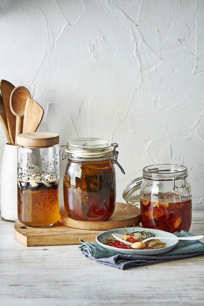 Roer gefermenteerde honing als limonadesiroop door water of sprenkel over yoghurt, pap, haloumi, zachte blauwe of droge harde kaas. Lekker fruit voor in de honing: nectarines, perziken, bramen, granaatappelpitjes en kaki. Liever hartig? Laat dan groene chili-peper en gember (samen of apart) in de honing fermenteren. In honing gefermenteerde knoflook en nigellazaad zijn heerlijk in zoete marinade of over wortels met boter, noedels, dumplings, rijst of wokgerechten.