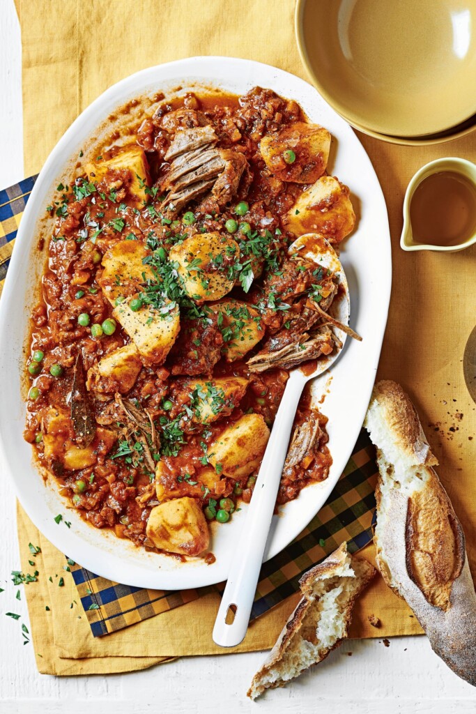 Italiaanse stoof op haar best. Door het vlees langzaam te garen in een saus van wijn, bouillon en groenten krijg je supermals comfortfood. Met verse doperwten maak je het lekker lente-proof.