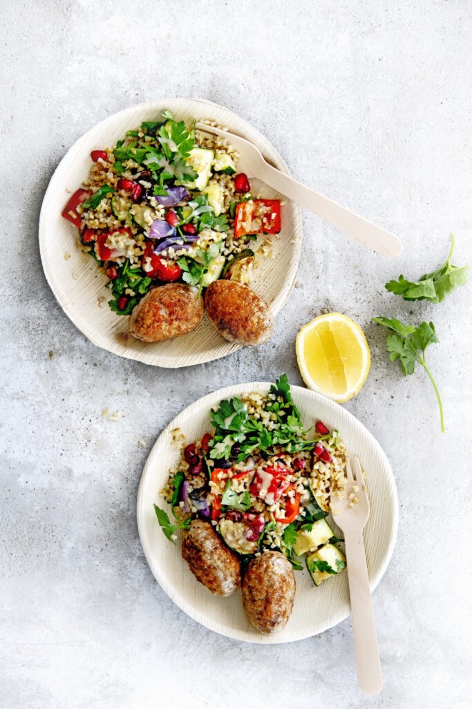 Frisse tabouleh en kip-köfte zijn ook op kamertemperatuur lekker, dus ideaal voor een picknick. Of om als hapje te serveren als er eters onder weg zijn en jij nog in de keuken staat.Zin om de tafel vol te zetten? Deze mezze passen er heel goed bij!