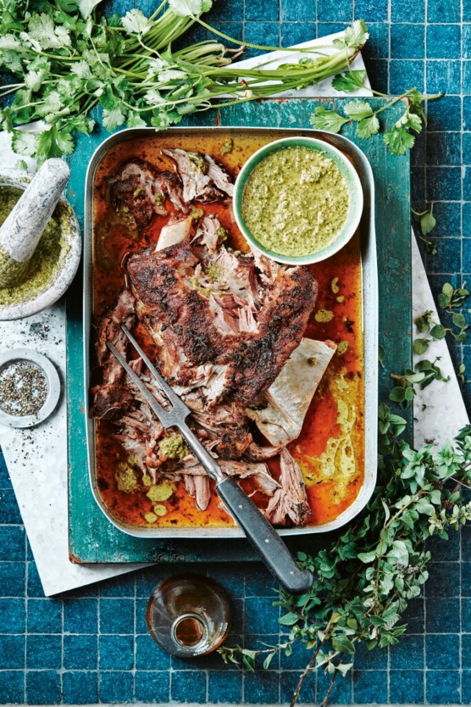 - Was voor de mojo verde de koriander en snijd klein. Doe samen met de verse oregano in de blender of kleine keukenmachine en voeg de knoflook, komijn, het citroensap, de olijfolie en 1 tl zeezoutvlokken toe. Pureer en voeg evt. nog zout en peper naar smaak toe. Sprenkel de mojo vlak voor serveren over het lamsvlees. Lekker met aardappels, risotto of gnocchi.