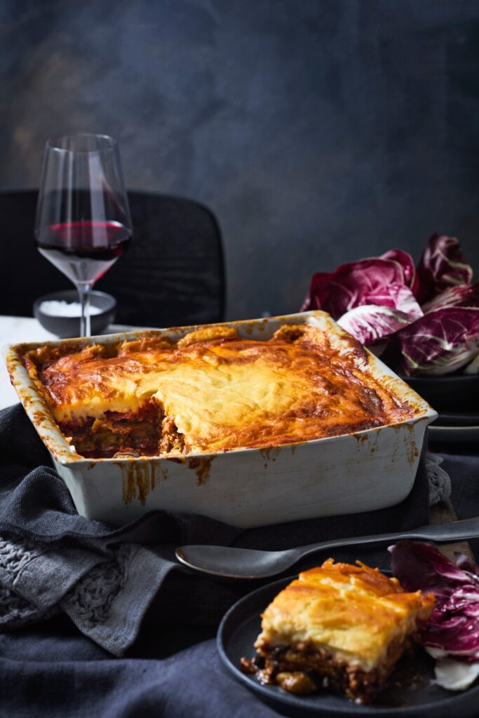 Hoewel moussaka te boek staat als een Grieks gerecht, heeft het gerecht een veel rijkere en grensverleggende geschiedenis, en reikt het van Egypte tot Roemenië. Het is een hartige laagjesschotel van aubergine, vlees en een romige bechamelsaus. Perfect voor zonnige maanden wanneer je wilt genieten van comfortfood met op en top rijpe aubergines en tomaten.