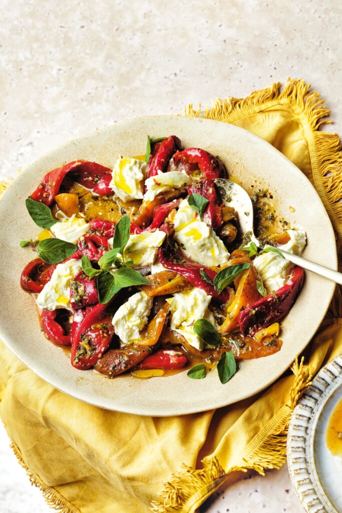 - Breng de paprika op kamertemperatuur en serveer met de mozzarella. Bedruppel met de olie en bestrooi met oregano, zout en versgemalen peper.