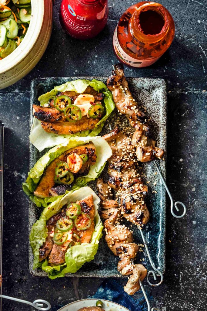 - Rooster tot krokant op de bbq of in een grillpan, in 15-20 min. Serveer in een slablad met groene peper en ssamjang erbij.
