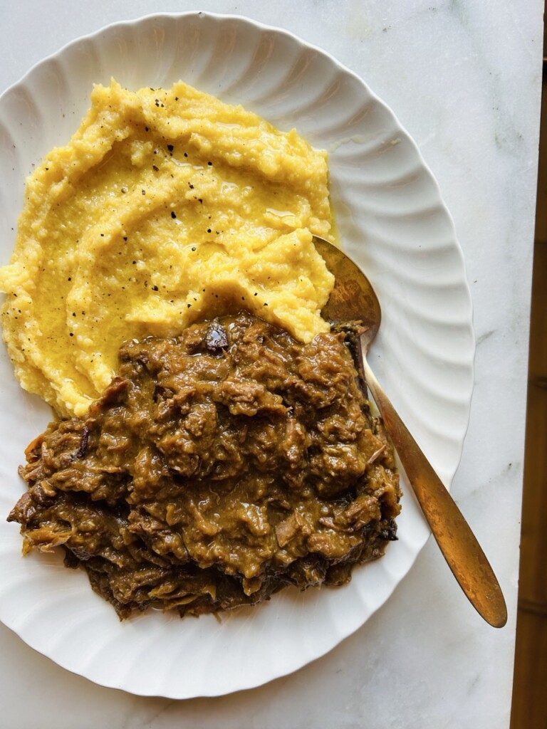 - Serveer de hachee bijvoorbeeld met romige polenta of puree.